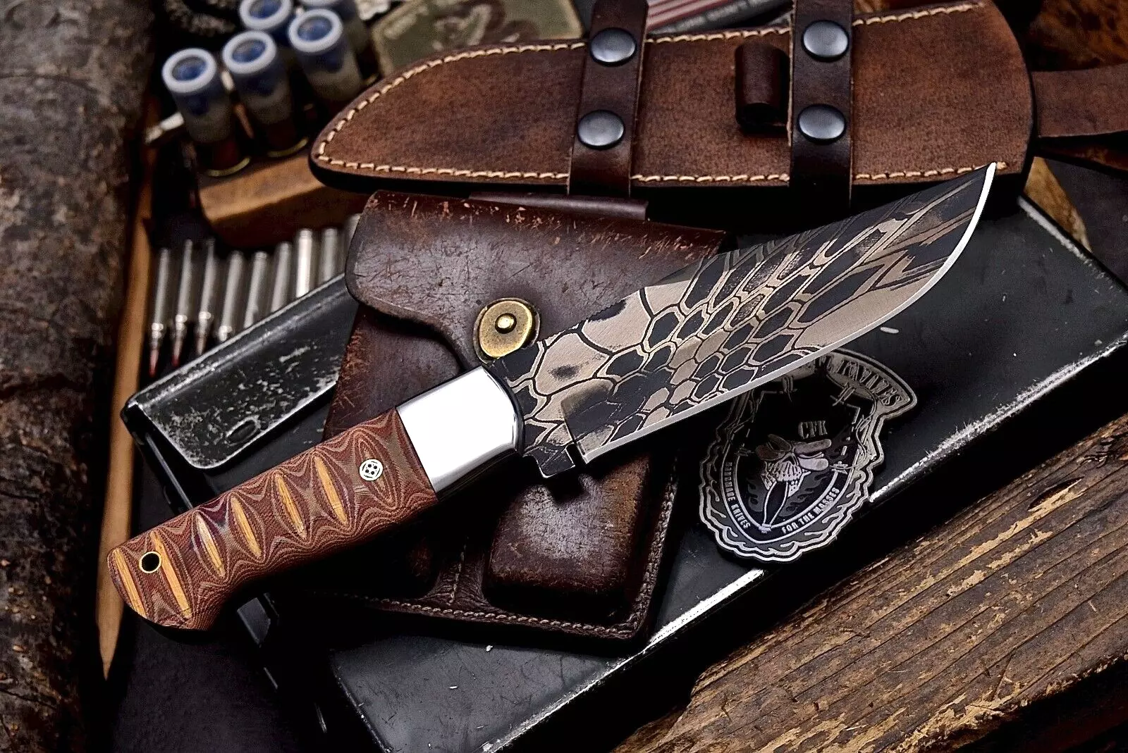 CFK Handmade CAMO AUS 8 Custom MICARTA Hunting Skinner Camping Sport Knife