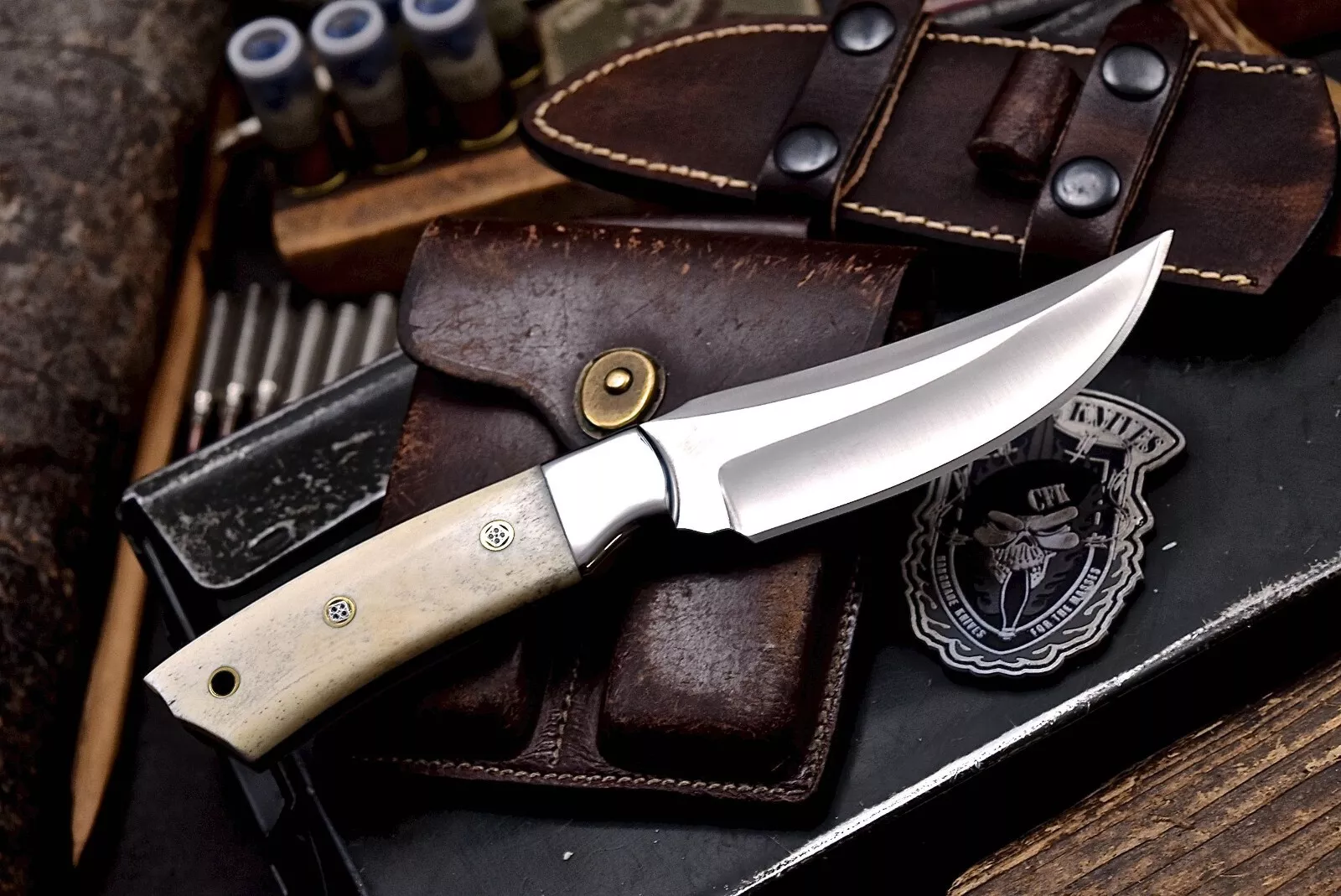 CFK Handmade ATS 34 Custom CAMEL BONE Hunting BIG GAME Skinner Sport Knife