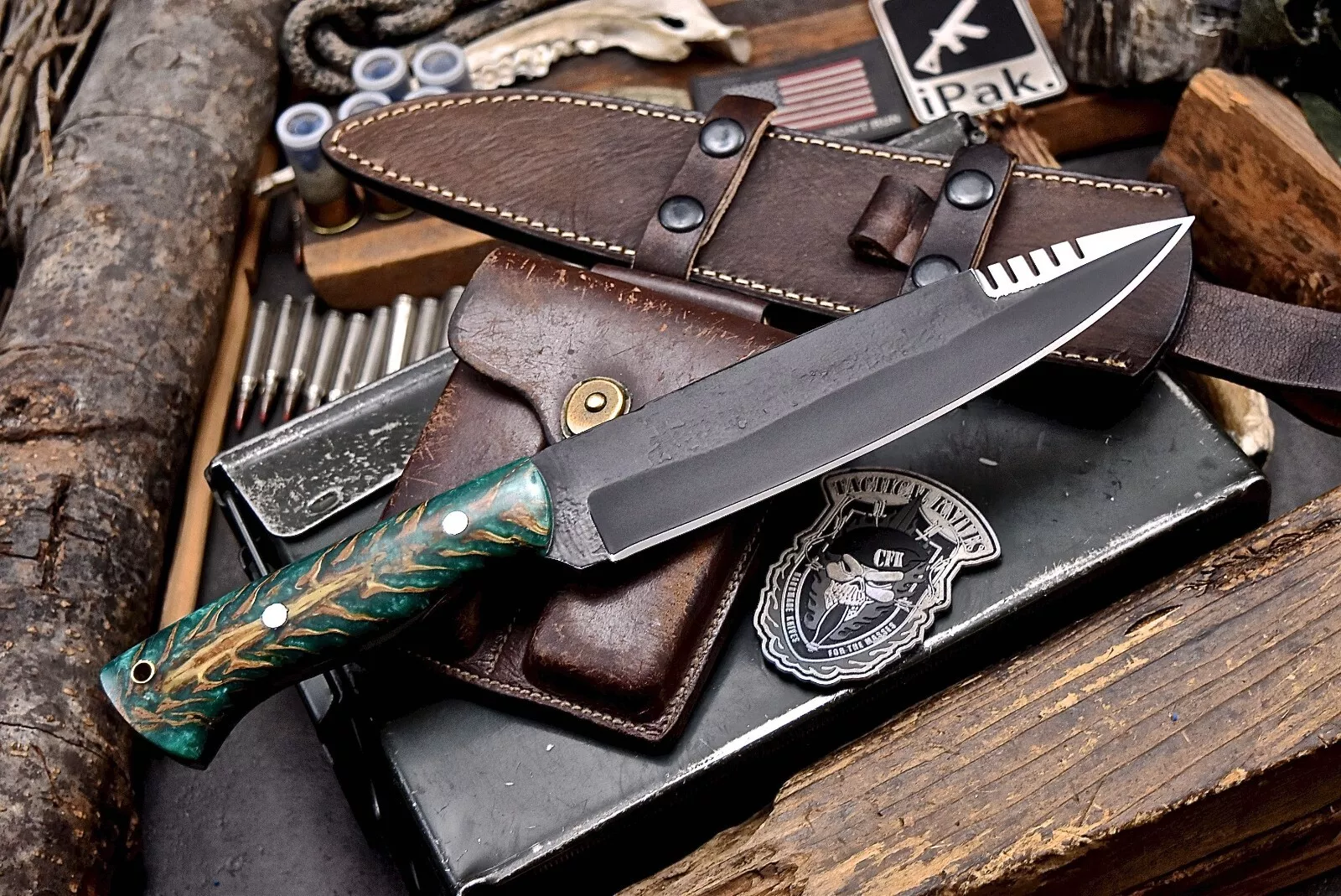 CFK IPAK Handmade D2 Custom PINE CONE Large Hunting Chopper Camping Sport Knife